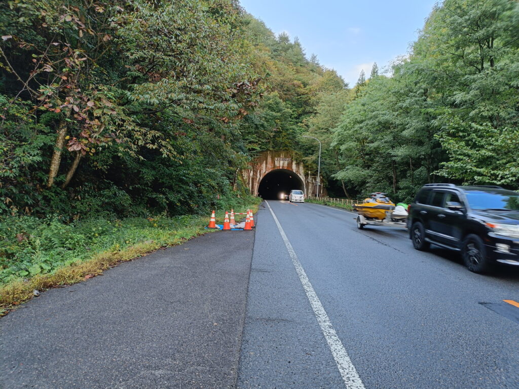 しばらく走って、今年もやってきました「クロモリトンネル」。近くの旧道にはクロモリ峠もあるそうです。カーボンフレームで通過してしまいました。