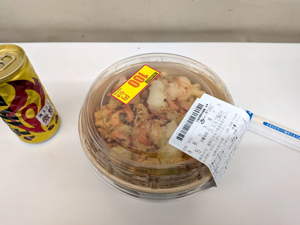 しばらく走ったところで空腹に耐えかねてローソンにて休憩。イートインがあったので、座って腰を休めながら夕食を取ることが出来ました。ありがたい。ローソンのまちかど厨房(店内調理弁当)の海鮮かき揚げ丼、好きなんですよね。