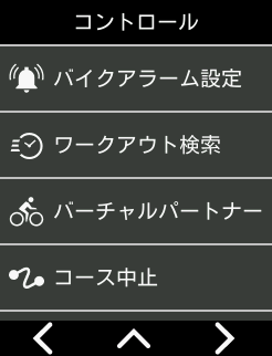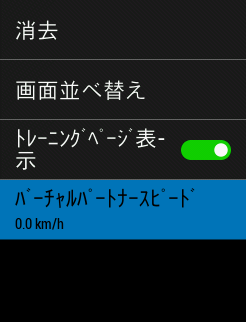 バーチャルパートナーをOFFにする設定画面ですが、実は普通には出てきません。「ルートナビをしている最中のみ」出てくるメニューの中にあります