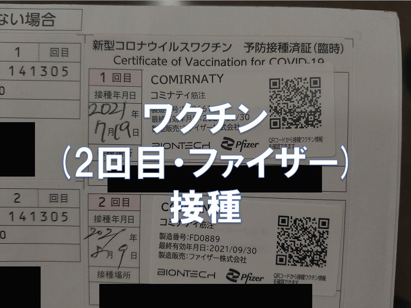 8/9(月)に、新型コロナウイルスのワクチン(2回目・ファイザー)を接種してきました。 前回までのあらすじ 7/19(月)の1回目接種の記事は↓です。 心配していた副反... -