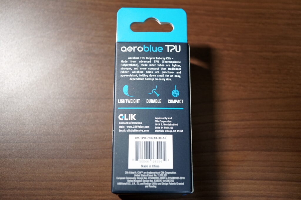 クリックバルブの権利を保持する「Clik」社から売り出されたTPUチューブ、その名もAeroBlueです。