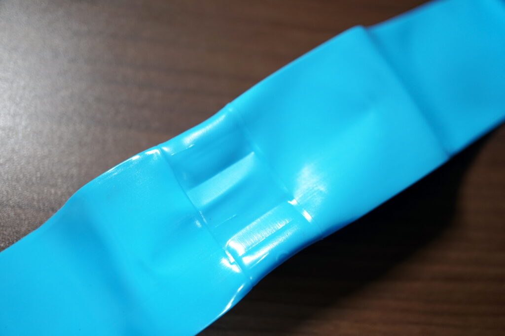 継ぎ目の部分は、最近のTPUチューブでよく見る、約2cm幅のタイプ。少し膨らみを持たせてあり、空気を入れた時に不自然にへこまないための対策だと思われます。