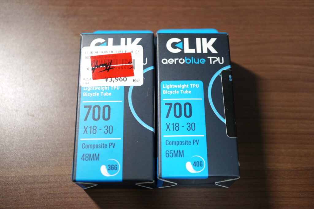 Clik「AeroBlue TPUチューブ」のファーストインプレッションです。最初に65mmバルブのモデルを買って、その後45mmバルブのモデルを買いました。40kmほどテストライドをしています。