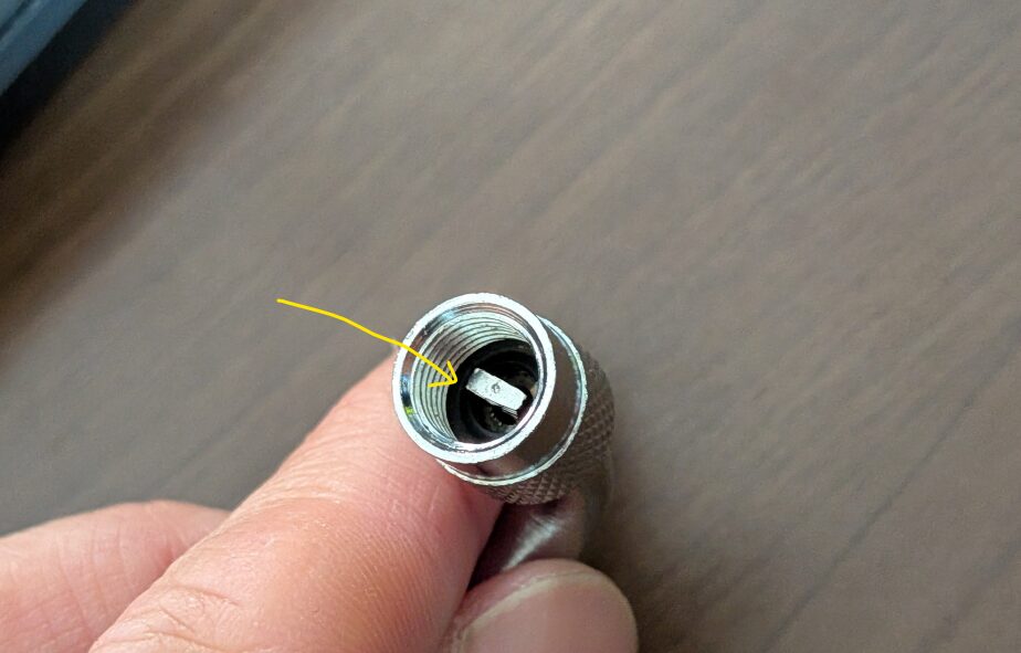 Core Capだけは、ネジ込み式口金を外す際に高確率で空気が漏れます。写真の口金内部の中央にある「押しピンを押す棒」がボタンを長く押し続けてしまうからです。Core Capを使うなら、携帯ポンプの口金はネジ込み式以外のものを選ぶべきでしょう。