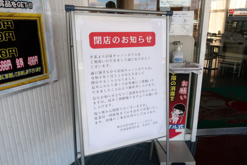 2026年1月31日を持って閉業するボウリング場「岩屋キャノンボウル」でボウリングをしてきました。