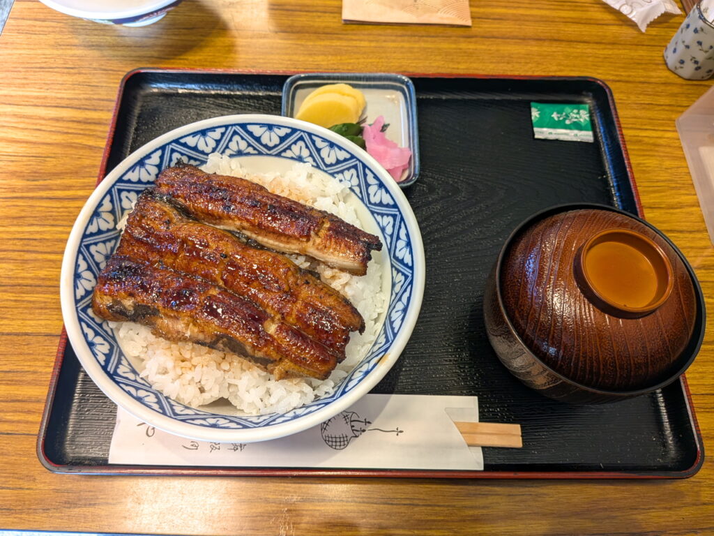 老舗の鰻屋「つるや」さんで、二段丼を食べました。ご飯の中にも鰻がもう一枚入ってます。炭火焼きで素晴らしく美味かった。