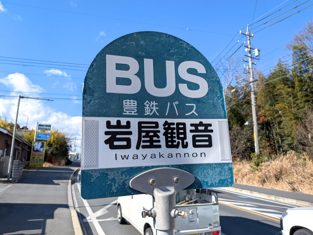 岩屋キャノンボウルの由来ともなった、岩屋観音バス停で下車。ここから400mで到着です。