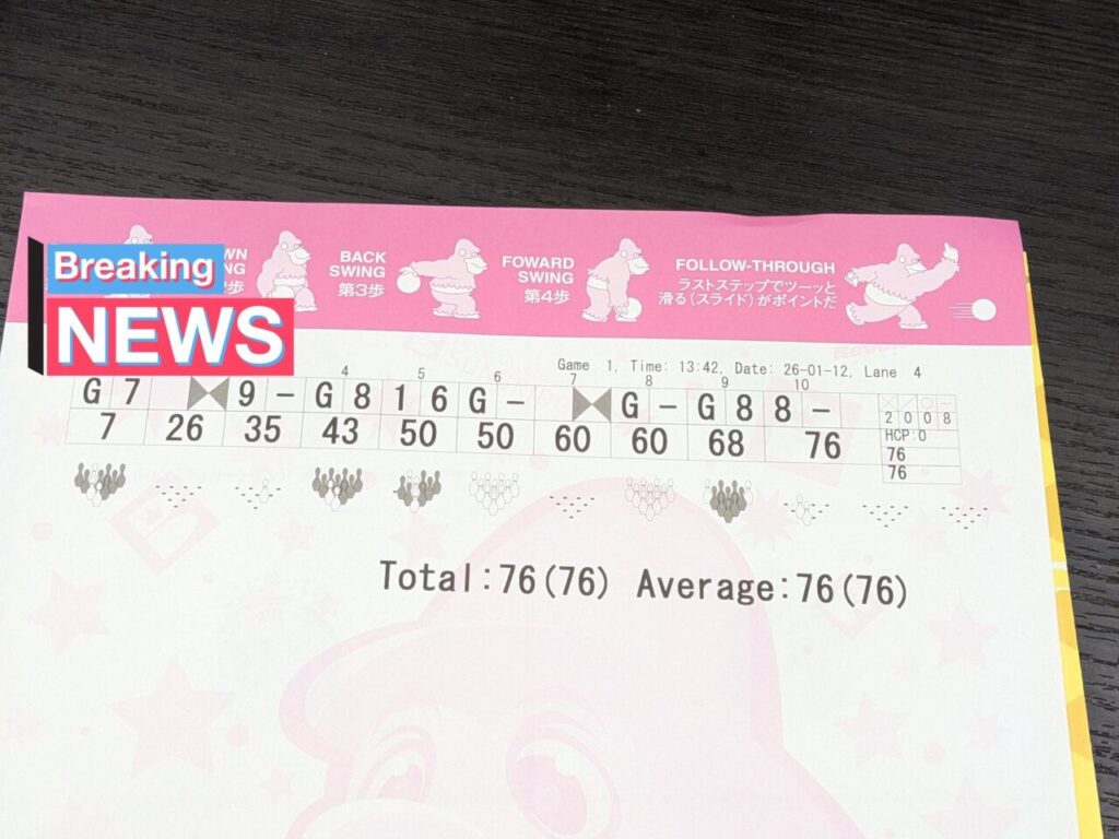 ゲームが終わると、成績シートがもらえます。スコアは76と散々でしたが、ストライクは2回取れたし、結構楽しかった。たまにはボウリングもやってみようかなと思いました。
