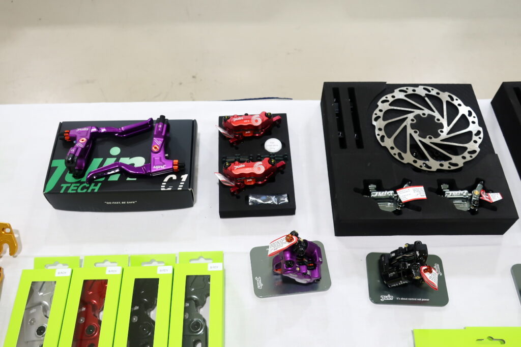入口近くに置かれていたカラフルなパーツたち。近づいてみると、台湾「Juin-Tech」のパーツでした。