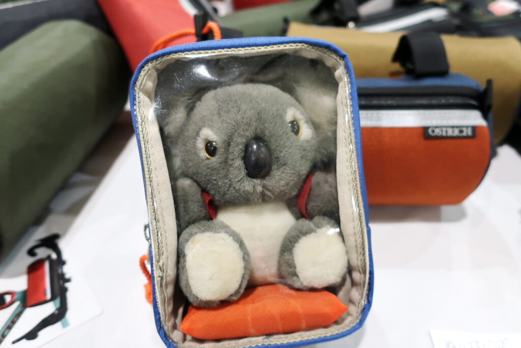もうひとつ話題を集めていたのが「ぬい活用ポーチ」。底にはぬいぐるみ用の座布団が入っているという念の入れよう。持参した私物のトビネズミの人形を入れてみましたが、残念ながら耳が収まらず。もう少し縦長サイズも作ってください!