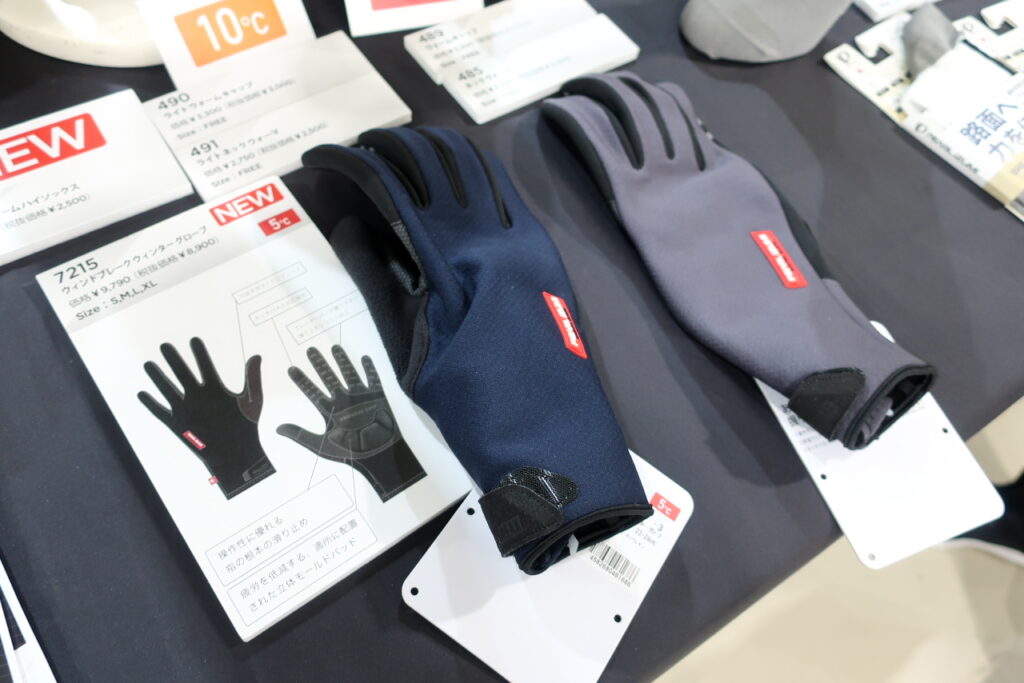 次の冬に発売予定らしい「ウインドブレークウインターグローブ」。薄いのに5℃対応。なかなか良さそうでした。