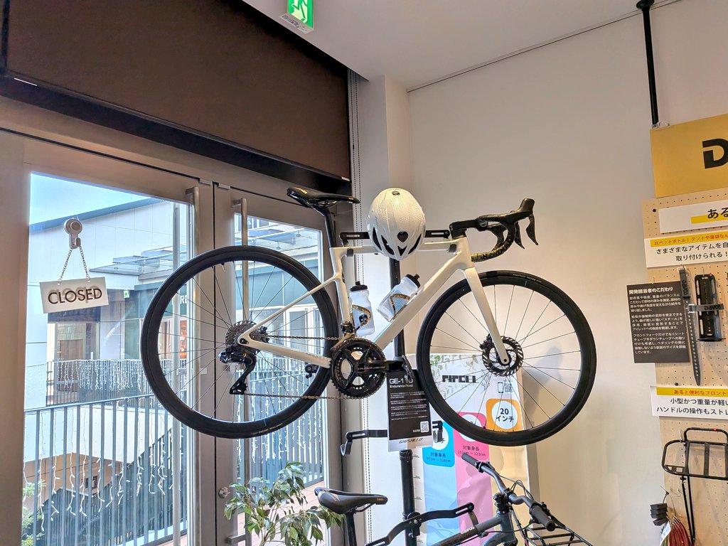 実は現在、こちらの責任者を務められているのがGE-110の設計者である牧さんなのです。営業カレンダーを見ると火曜日は定休日のはずですが、この日は営業。恐らく、牧さんはサイクルフェアには行かず、こちらに詰めているであろうと読んで立ち寄りました。読み通り、店内には牧さんがいらっしゃいました。