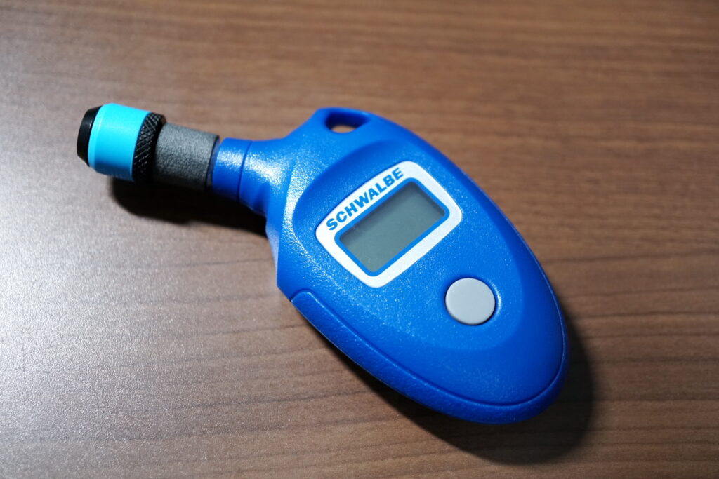 こちらはSchwalbeの出している空気圧計。元々存在していた青いAIRMAX PROと基本的には同じようですが、クリックバルブ用の口金が付属します。