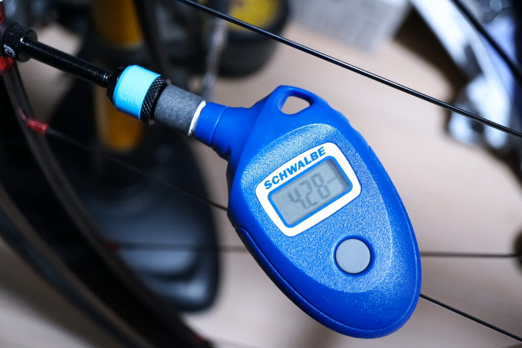 Panaracerの空気圧計の仏式側でも測れることは測れるのですが、相当奥までバルブを突っ込む必要があって抜き差しに力が要ります。