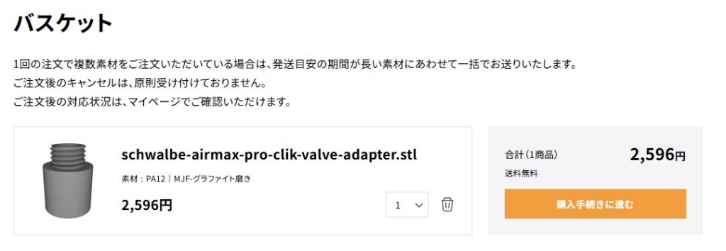 材料は、「PA12|MJF-グラファイト磨き」としました。
