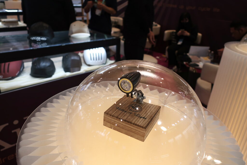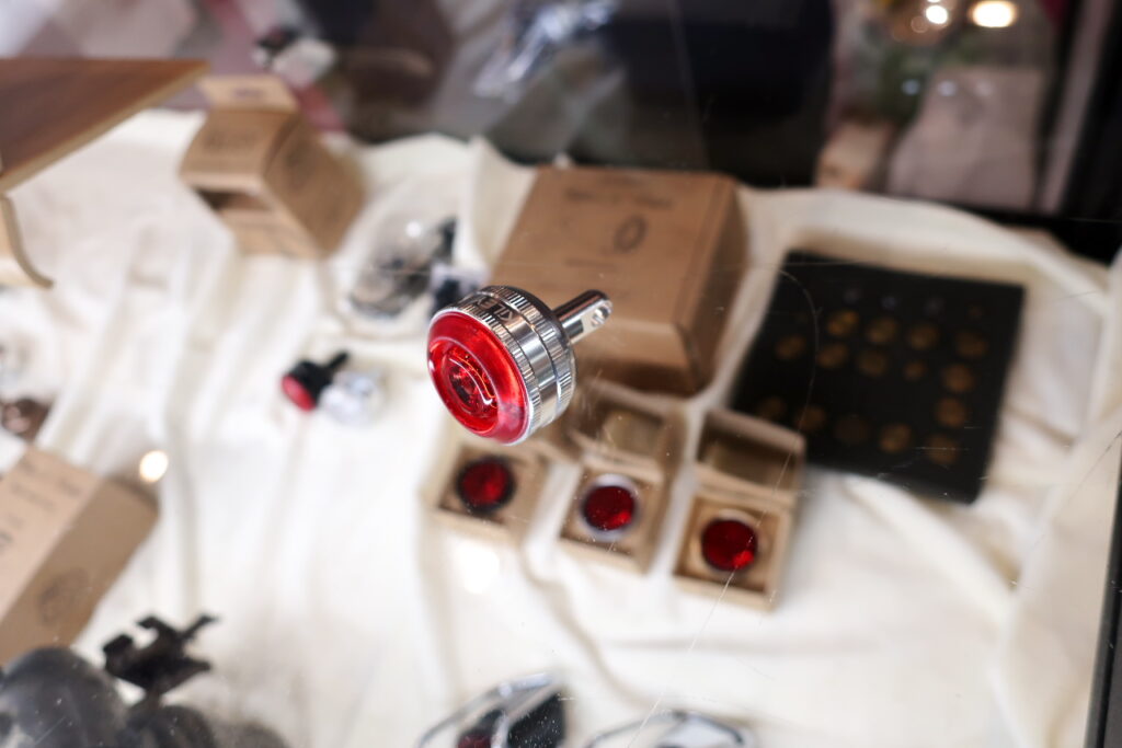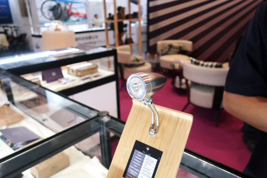 ブランドのテーマは、クラシカルな自転車に似合うアイテムの制作。製品の外見は1970年代のランドナーやスポルティーフに似合うようにデザインされていますが、中身は最新。充電式で、端子もType-C。ライトとしての性能は専門メーカーに対抗しようとは思っていないものの、見た目と性能のバランスにこだわっておられるようでした。