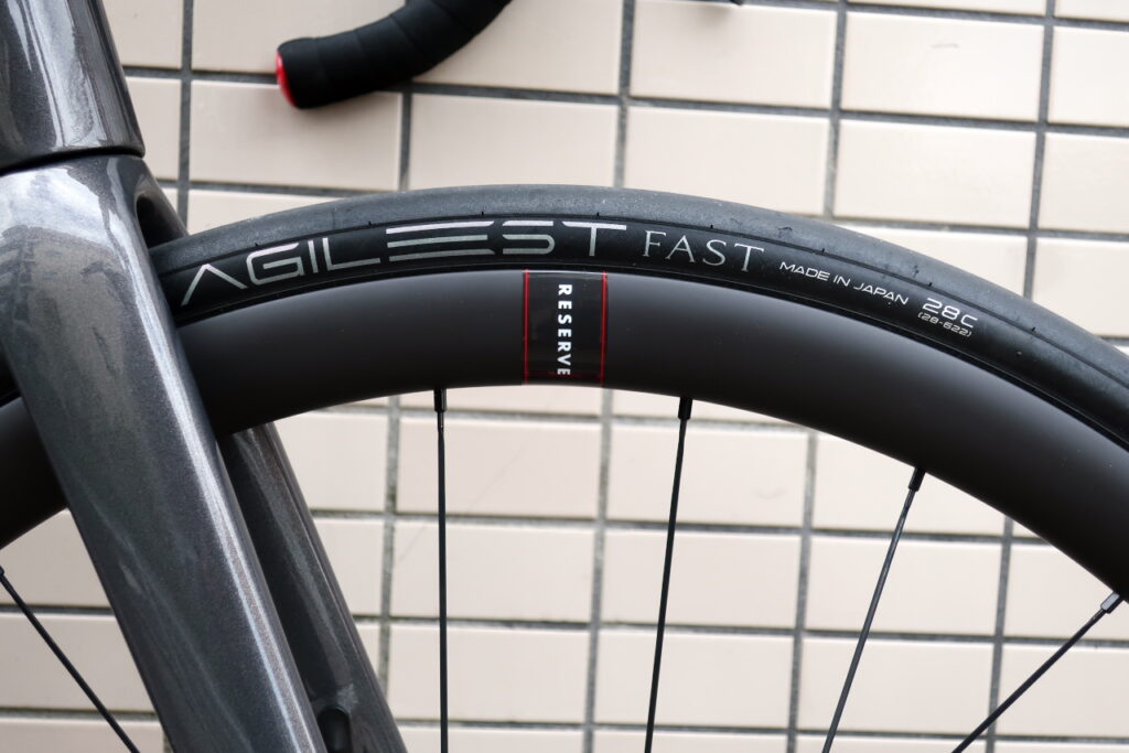タイヤはPanaracer「AGILEST FAST 28C」、チューブはGuee「Aerolite」。SHAMAL CARBONについていたものを移植しました。