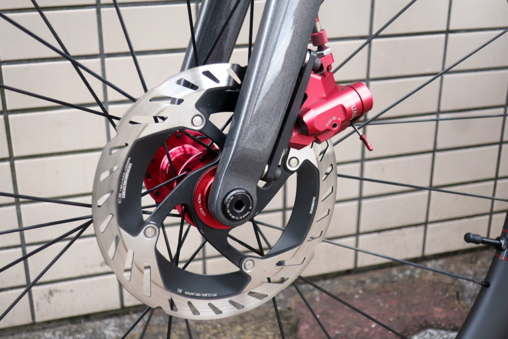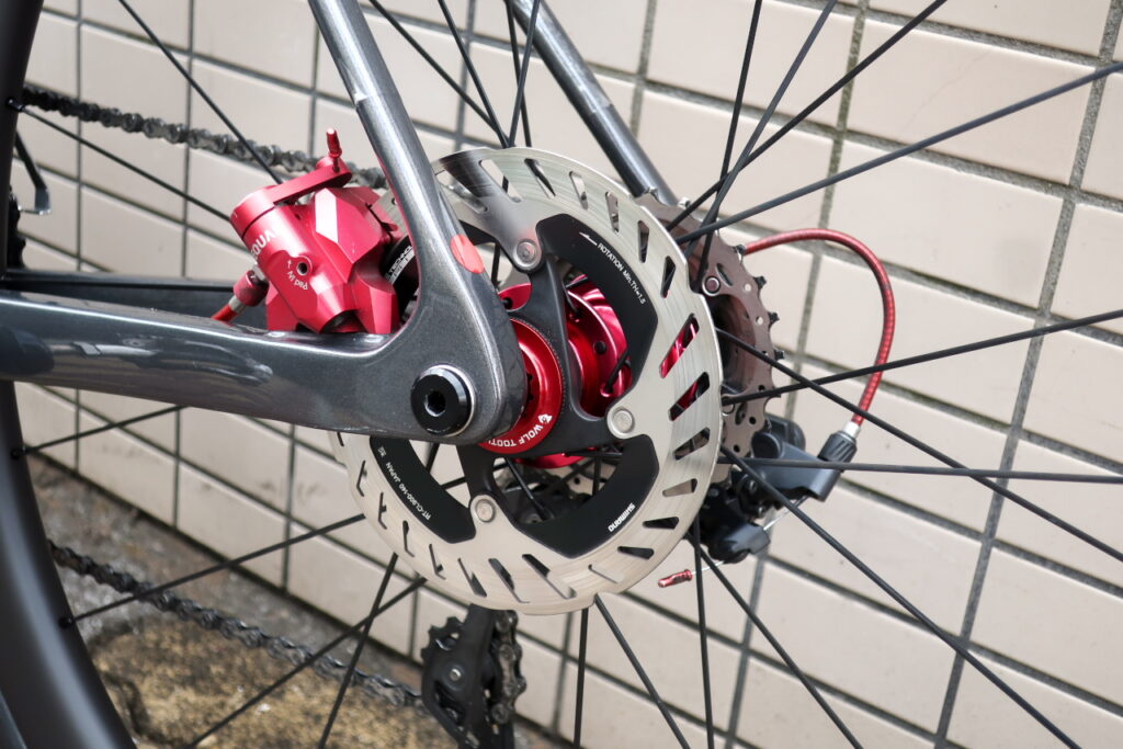 ディスクローターは、RT-CL900。ロックリングは、Wolf Toothの内セレーションタイプ・レッドカラーを奢りました。高かったですが、赤成分を増やしたかったのです。