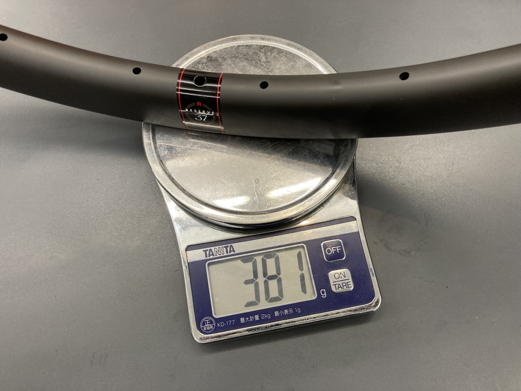なお、リム単体重量は、前輪372g/後輪381gでした。