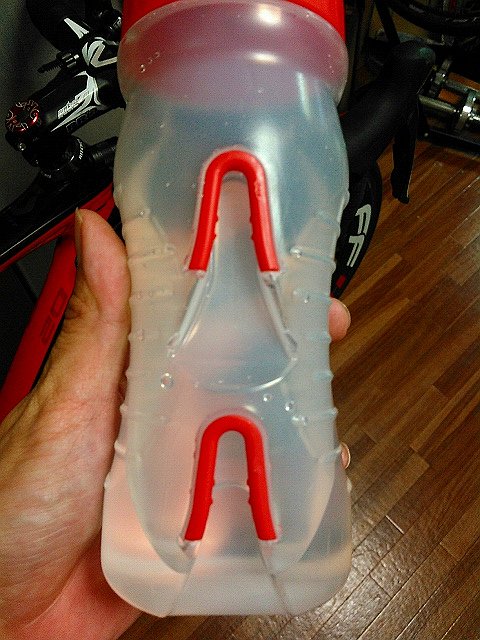 次に差す方ですが、通常のボトルケージのようにいい加減に入れることは出来ません。ボトル側の凹みと、突起部分の角度を合わせて入れる必要があるからです。昼間に落ち着いてやれば問題なく差すことは出来そうですが、夜間には中々差すことが出来ませんでした。街中でコレなので、ロングライド中の夜の峠では差し込める自信がありません。レースみたいな落ち着かない環境で差すのは、私には無理です。