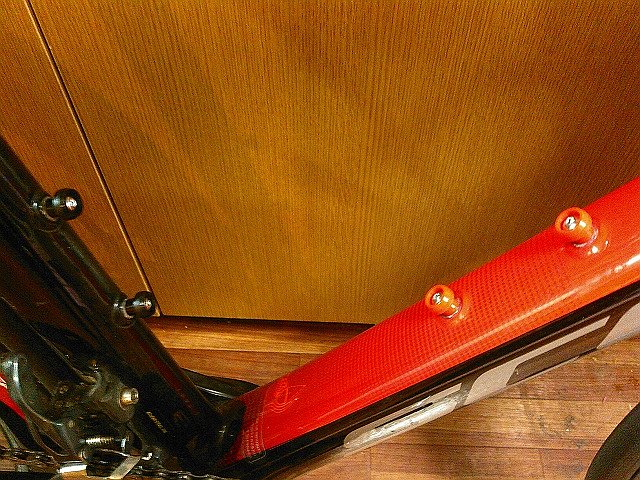私のFoilはダウンチューブが赤色、シートチューブが黒色。2色の突起がちょうど色が合って良い感じ。
