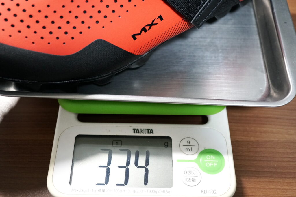 43サイズのSPDシューズとしては軽い部類に入ります。シマノのXC1よりは重いですが、十分に軽いと思います。