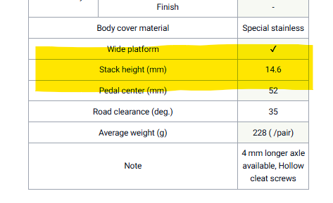ビンディングペダルの製品ページを見ると、大抵スペック一覧の中に「スタックハイト」という項目があります。